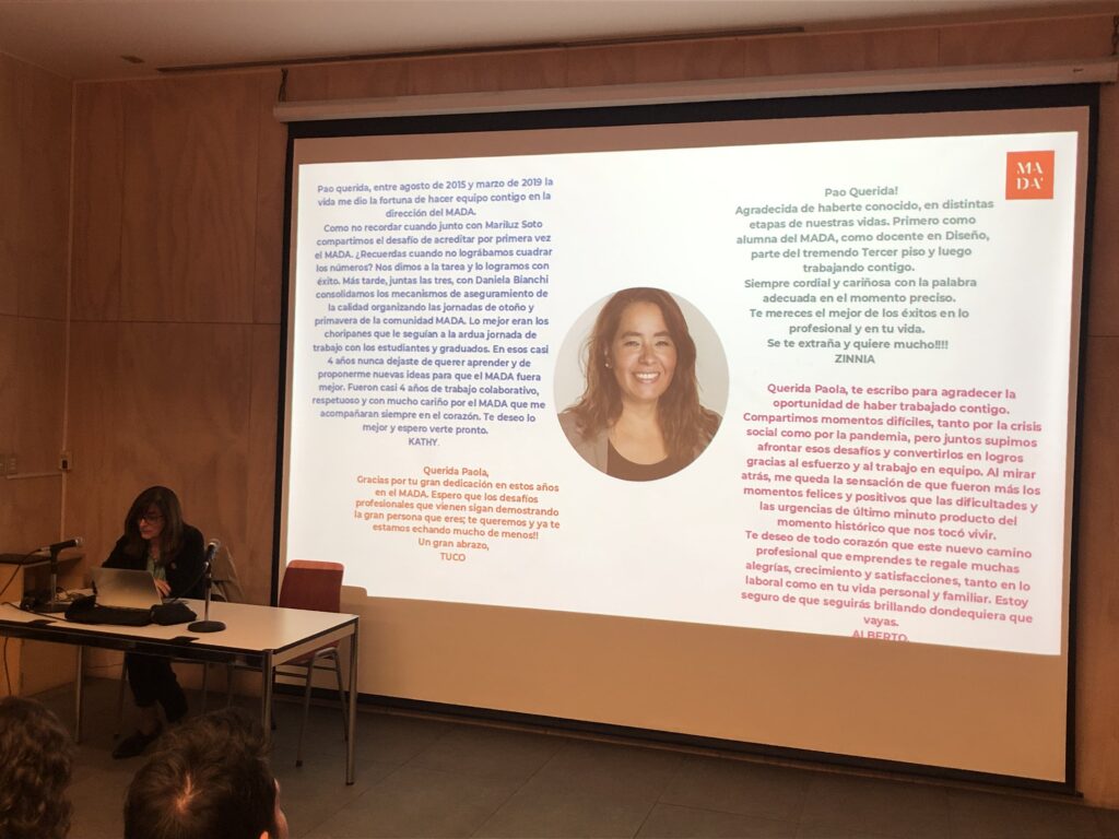 En la ocasión, la Directora aprovechó de agradecer a Paola Olguín la labor de años de dedicación al MADA, así como desearle el mayor de los éxitos en su nuevo camino profesional.