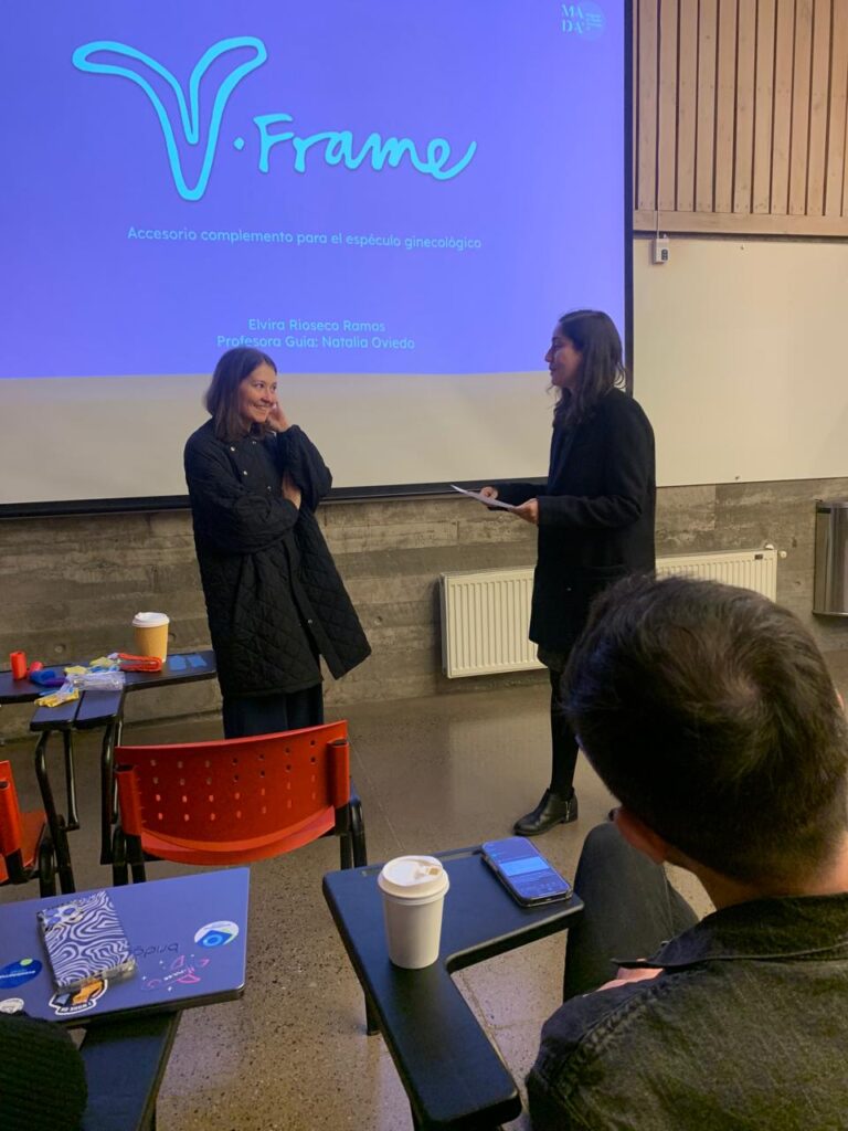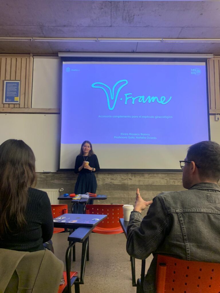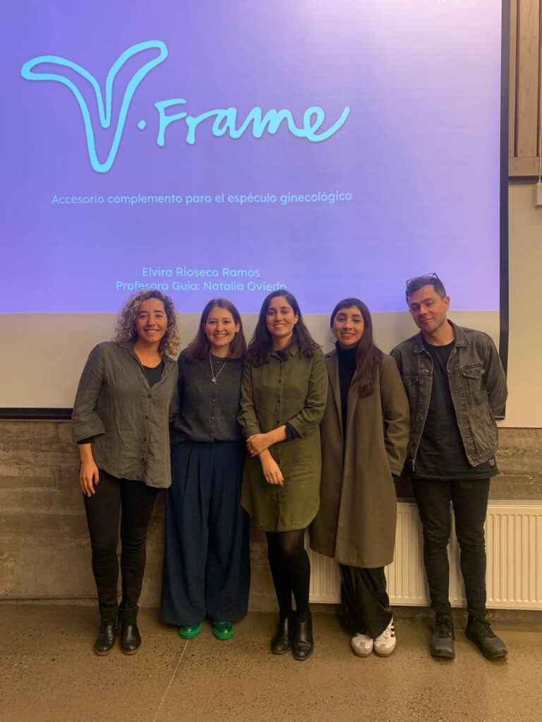 Mediante la metodología del diseño centrado en el usuario —que incluyó entrevistas, observaciones e instancias de co- creación entre personal médico ginecológico y diseñadoras— se desarrolló V-Frame, un accesorio para el espéculo ginecológico que mejora la visualización del cuello uterino al prevenir el colapso de las paredes vaginales. Su objetivo es optimizar la calidad y efectividad de la toma de muestras en este segmento.